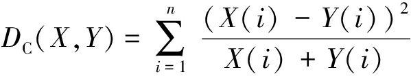 式中:D反映了X和Y两种样本的不相似性,D越大,相似度越小;D1(x,y)和D2(x,y)分别为卡方距离和欧氏距离;α为融合系数,0<α<1,通过改变α的大小可以提高分类效果。