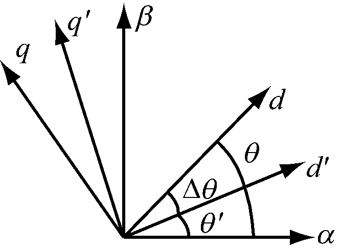 θ,θ′和Δθ的关系如图1所示。其中,dq为同步旋转坐标系,αβ为静止坐标系,d′q′为估计的同步旋转坐标系。