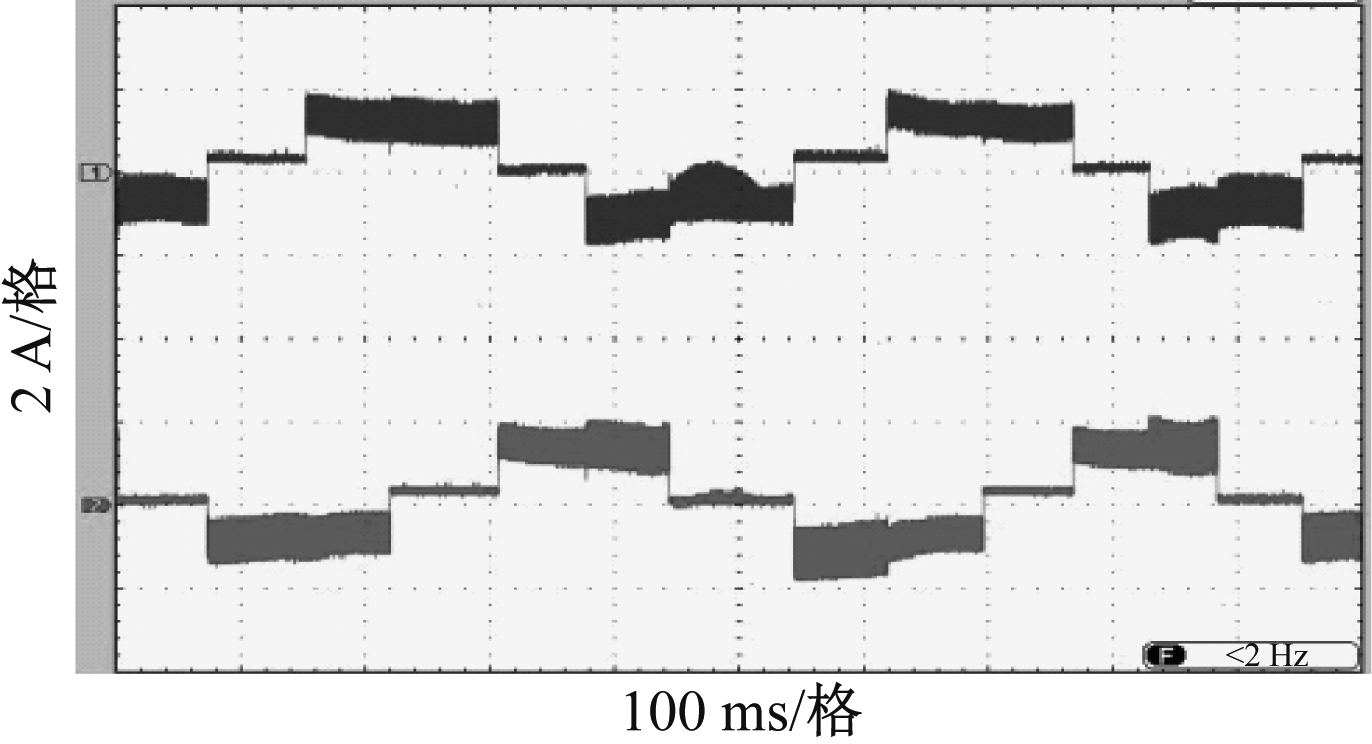 IPMSM以90,50 r/min转速运行时的定子两相电流和转子编码器实测输出脉冲信号分别如图8、图9所示。可看出在转速很低的情况下,虽然定子电流中的畸变因子较大(未加滤波),但转子编码器测量的输出脉冲稳定,表明改进脉动高频电压注入法能使IPMSM在低速段稳定工作,且具有良好的动静态性能。