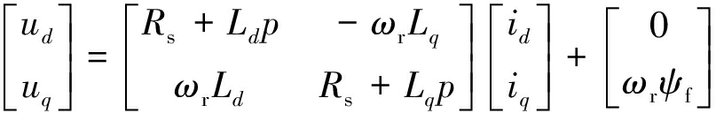 式中:ud,uq,Ld,Lq,id,iq分别为定子电压、电感、电流在同步旋转坐标系d,q轴的分量;Rs为定子电阻;p为微分算子;ωr为转子角速度;ψf为永磁体磁链。