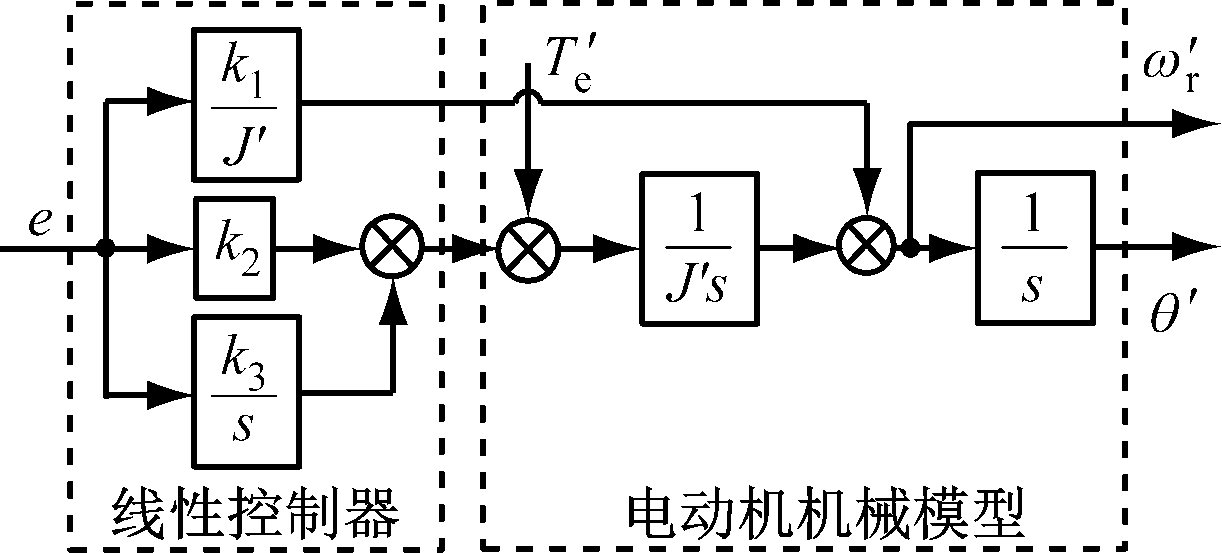 将ε(Δθ)作为误差矫正项输入龙伯格观测器中便可获取估算的转子位置角和转速,具体处理过程如图3所示,其中e为误差信号,k1,k2,k3为控制系数,J′和