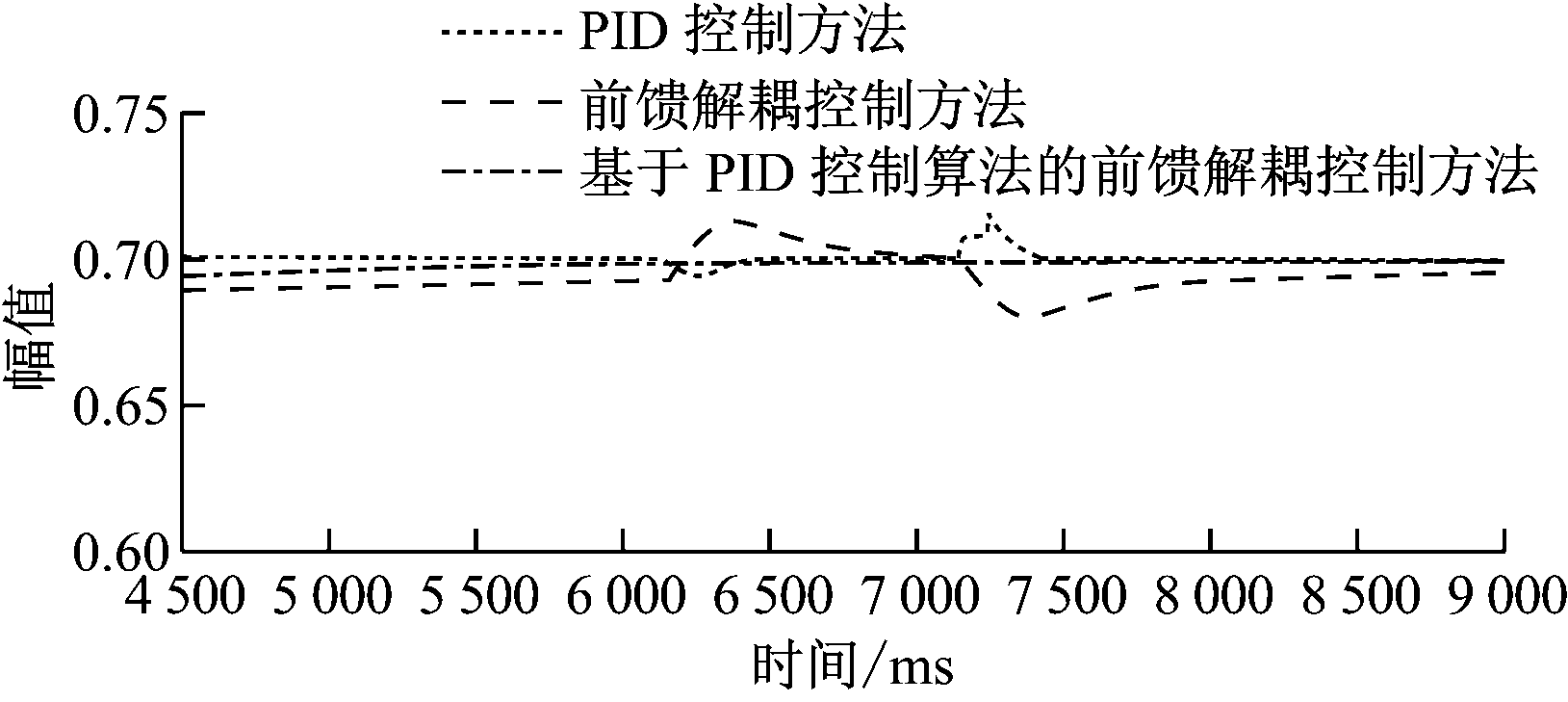 在保持原有给定的情况下,采用基于PID控制算法的前馈解耦控制方法对系统进行控制,输出曲线如图6所示。