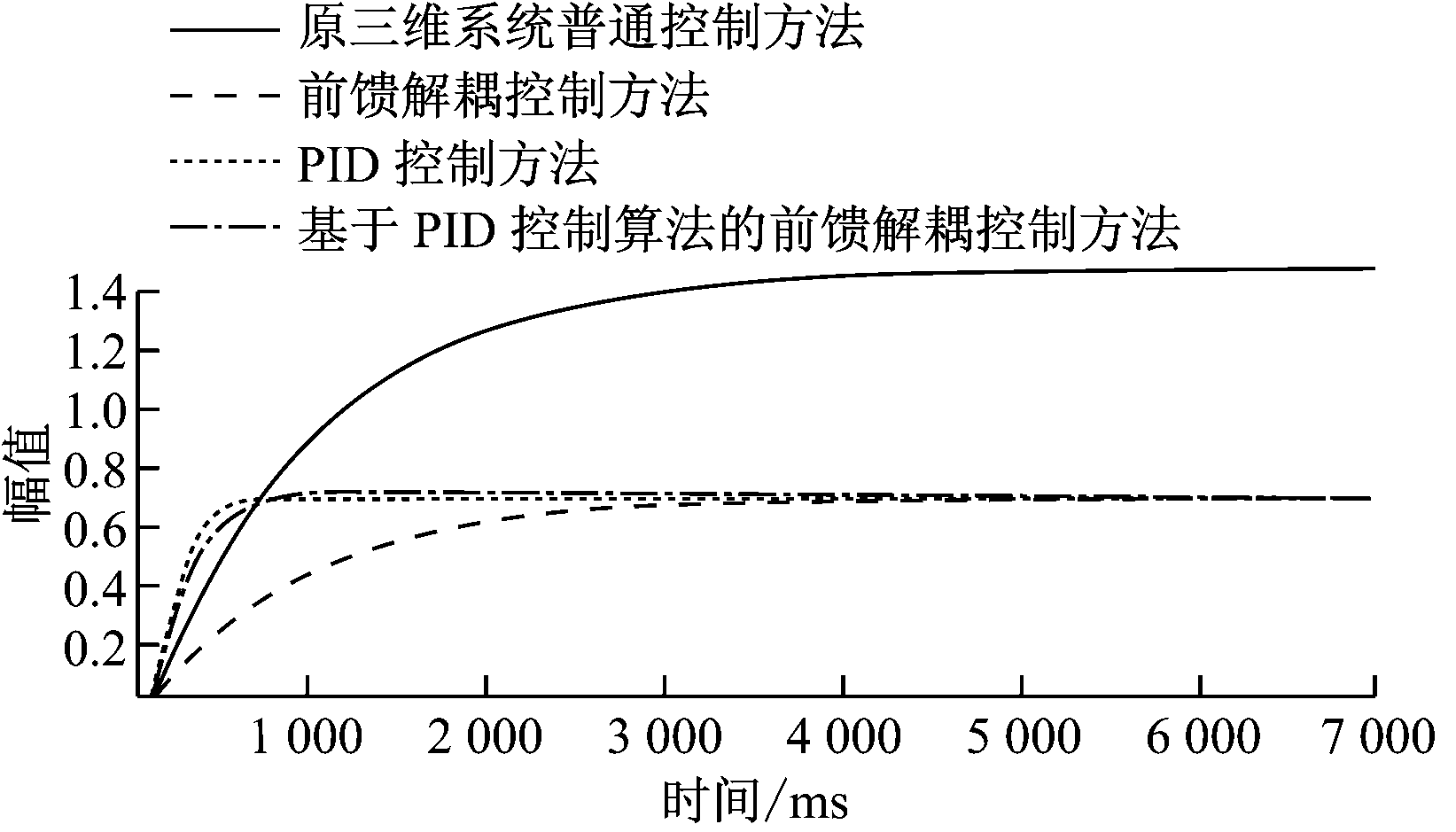 图6 采用基于PID控制算法的前馈解耦控制方法的三维系统输出曲线