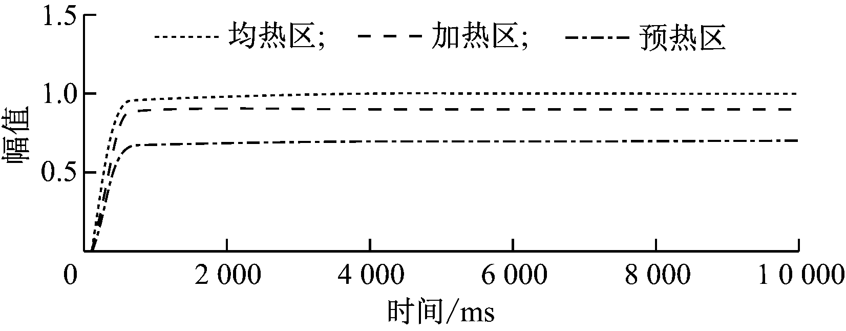 由图6可知,在给定同为0.7,0.9,1.0的比例温度下,基于PID控制算法的前馈解耦控制方法可以使加热系统迅速达到温度要求,证明了采用基于PID控制算法的前馈解耦控制方法可以优化根据实验测得的多温区系统的输出曲线,达到了在避免浪费原料的前提下提高加热速率的目的。