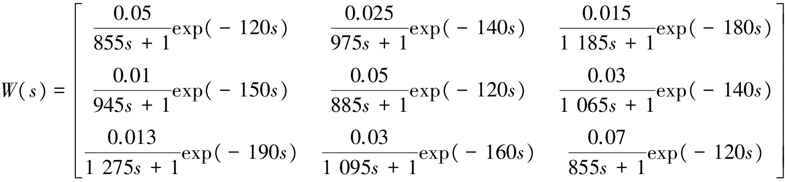 结合式(1)和经验建模法建立多输入多输出(Multiple-Input Multiple-Output,MIMO)的三维系统,即燃煤加热炉加热系统模型(式(2))[8-9]。