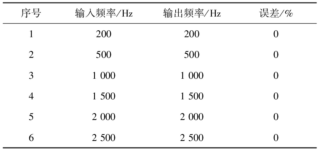 不同输入频率下的信号测试结果见表2。从表2可知,频率误差为0,满足实际需求。
