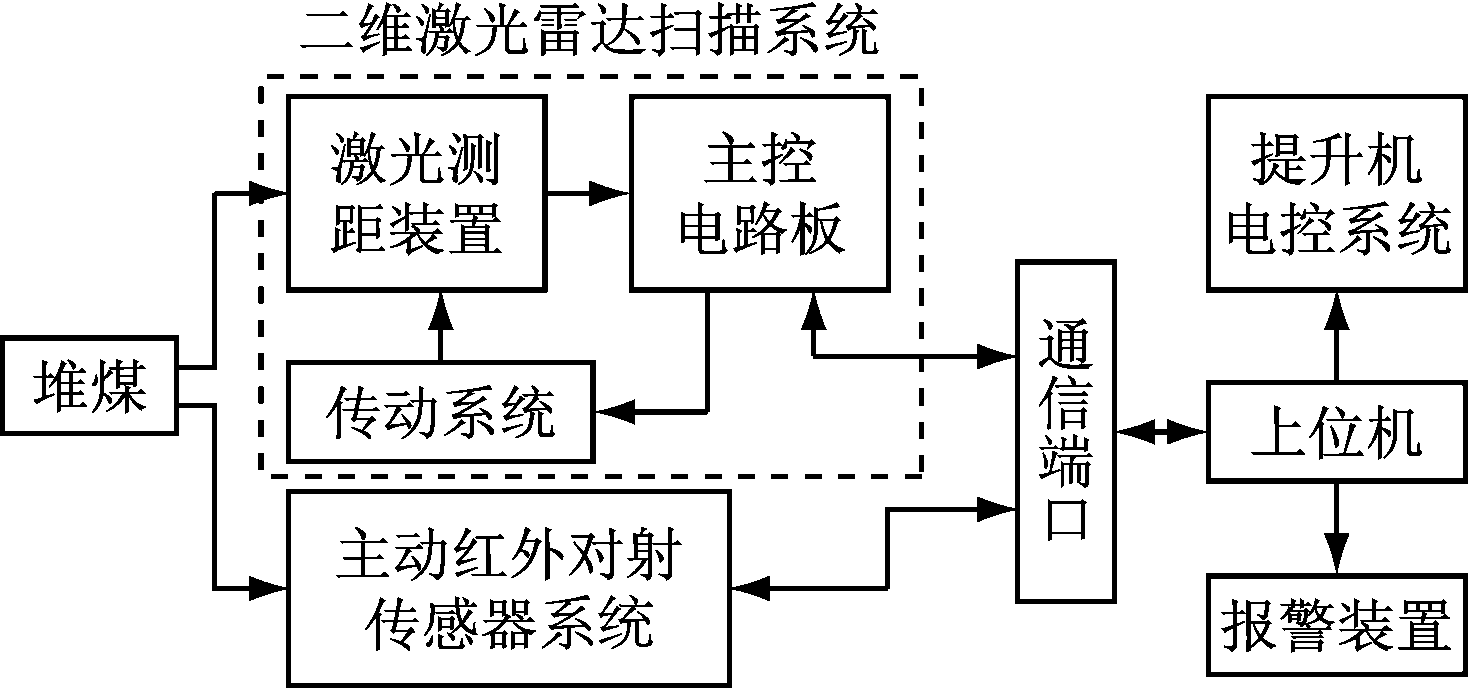 Key words:mine hoist; tail rope; coal piling; two-dimensional laser radar scanning system; active infrared radiation sensor system