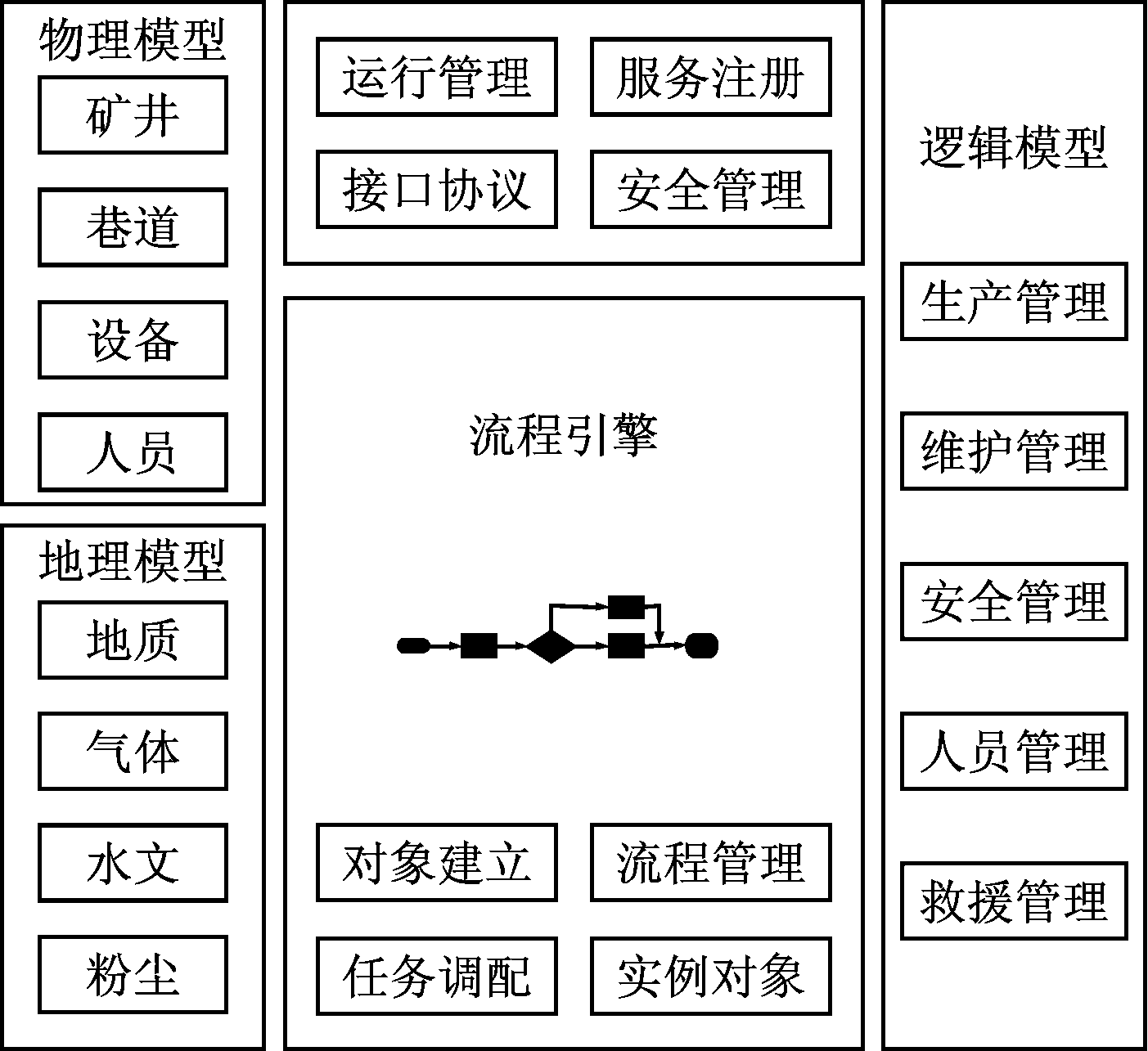 (4) 数据驱动性。矿山管理系统运行过程中会产生大量实时数据,相对于传统的模型驱动方式,数据驱动方式更符合矿山管理系统的要求,能更有效地运用矿山数据,提高矿山管理系统整体运行效率。