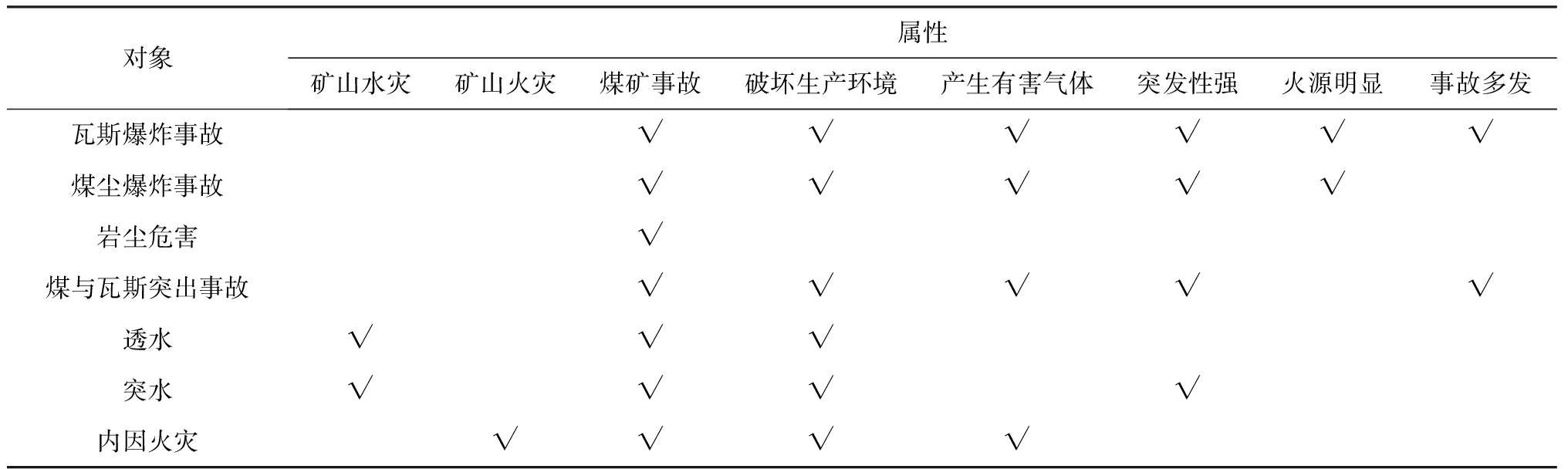 Table 1 Part thesaurus of coal mine accident