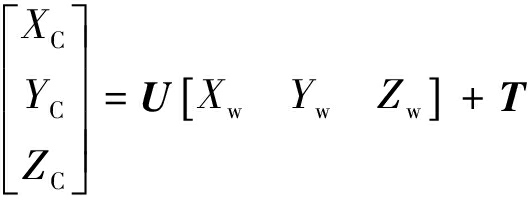 式中U,T分别为摄像机的外部参数旋转矩阵和平移向量。