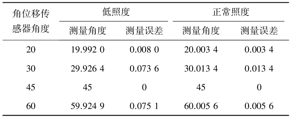 Table 2 Measurement results of shearer rocker angle under two kinds of illuminance (°)