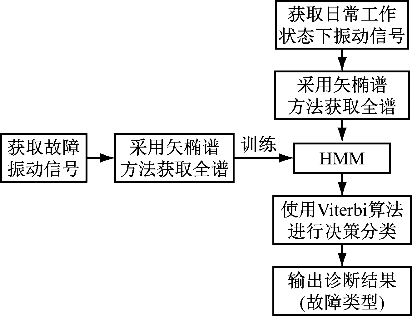 Fig.1 Fault diagnosis process based on vector ellipsoid spectrum and HMM