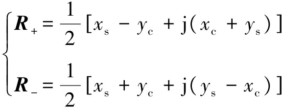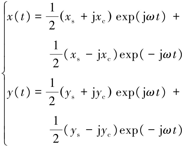 矢椭谱故障诊断方法将t时刻轴流通风机转子水平方向振动信号x(t)和竖直方向振动信号y(t),在时域内合成为复信号z(t)=x(t)+jy(t),然后对复信号z(t)进行Fourier变换,得到不对称双边谱或轴心轨迹等特征量,进而对轴流通风机进行故障诊断[11]。为便于阐述原理且不失一般性,将轴流通风机转子水平方向和竖直方向的振动视为简谐振动,即