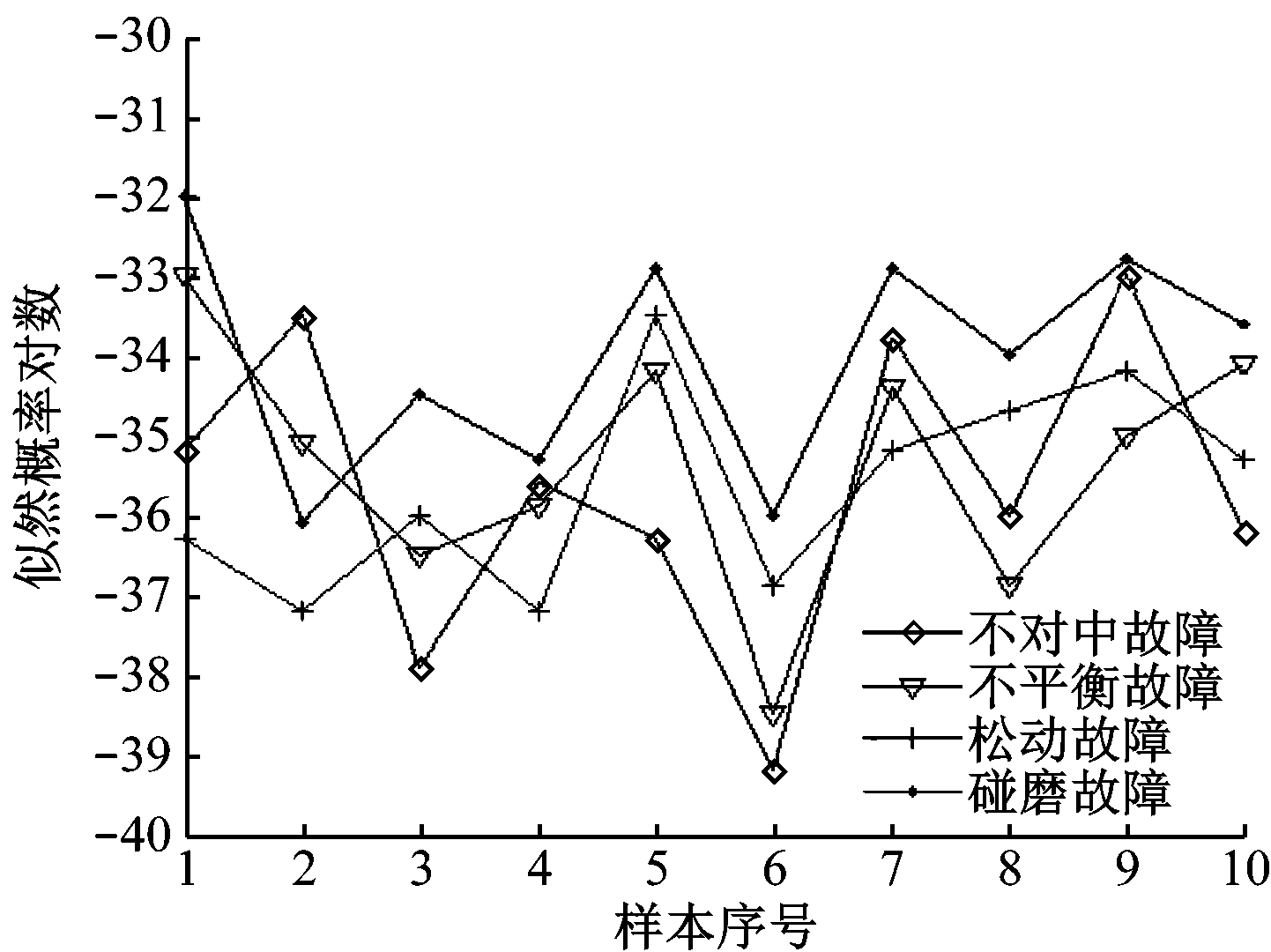 图4 不同故障状态下HMM输出似然概率对数曲线
