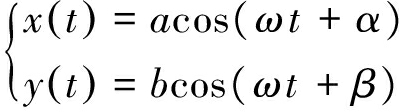 式中:a,b分别为转子中心在水平、竖直方向的振动信号幅值;ω为振动角频率;α,β分别为水平、竖直方向上的振动信号相位。