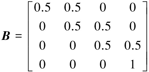 概率分布采用4状态左右型Markov链进行初始化。HMM初始概率分布为π=[1 0 0 0],观测值概率矩阵为