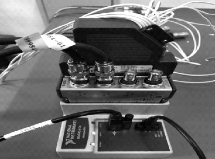 轴流通风机故障诊断试验装置主要包括矿用/隧道轴流式对(双)旋通风机、加速度传感器和振动信号采集装置,如图2所示。选用SDF-4型轴流式对旋通风机,其额定电压为380 V,双电动机功率为2×2.2 kW、转速为2 900 r/min,风量为72~136 m3/min,风压为251~2 156 Pa;选用NICDAQ9174型振动信号采集箱、NI9234型振动信号采集卡(采样率达51.2 kSamples/s);选用NI780985-01型加速度传感器。