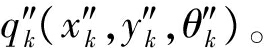 与Pk+1间的初始相对变化量qk由编码器数据计算获得。为了修正编码器的读数误差,本文运用基于ICP算法的激光数据配准方法,通过3步迭代修正Pk与Pk+1之间的相对变化量qk(xk,yk,θk)(qk包含了ZD-2017煤矿探测机器人第k种运动状态位置相对于第k-1运动状态位置在二维坐标系上的x、y坐标增量值和机器人与x轴夹角的增量值θ),通过修正后的变化量记为