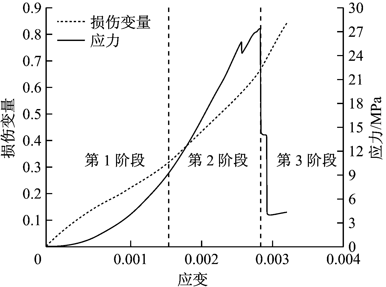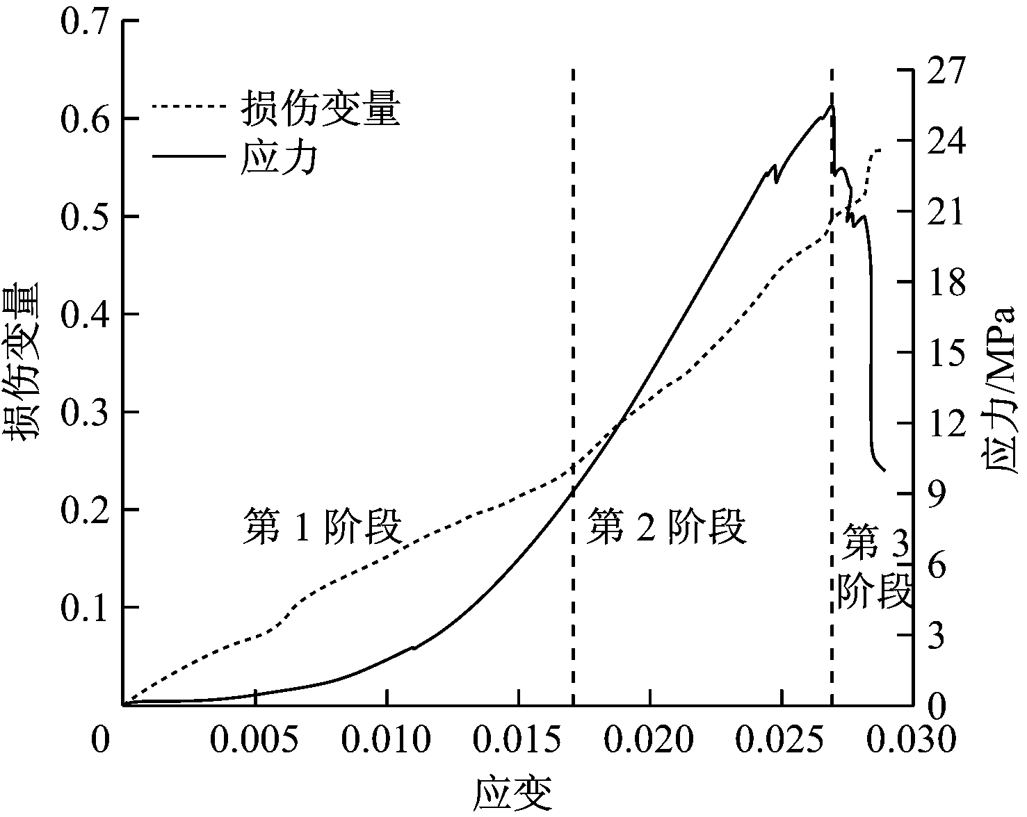 由图3可看出,在单轴压缩条件下,煤岩受载损伤演化过程可分为3个阶段。
