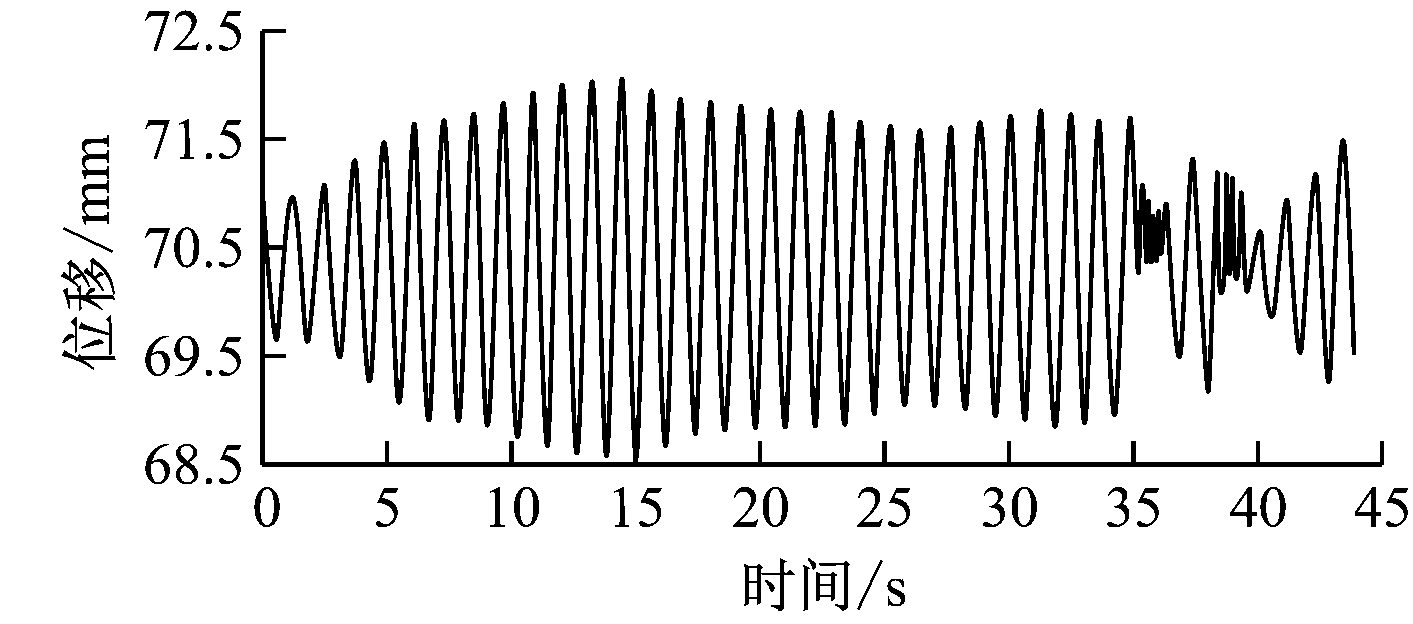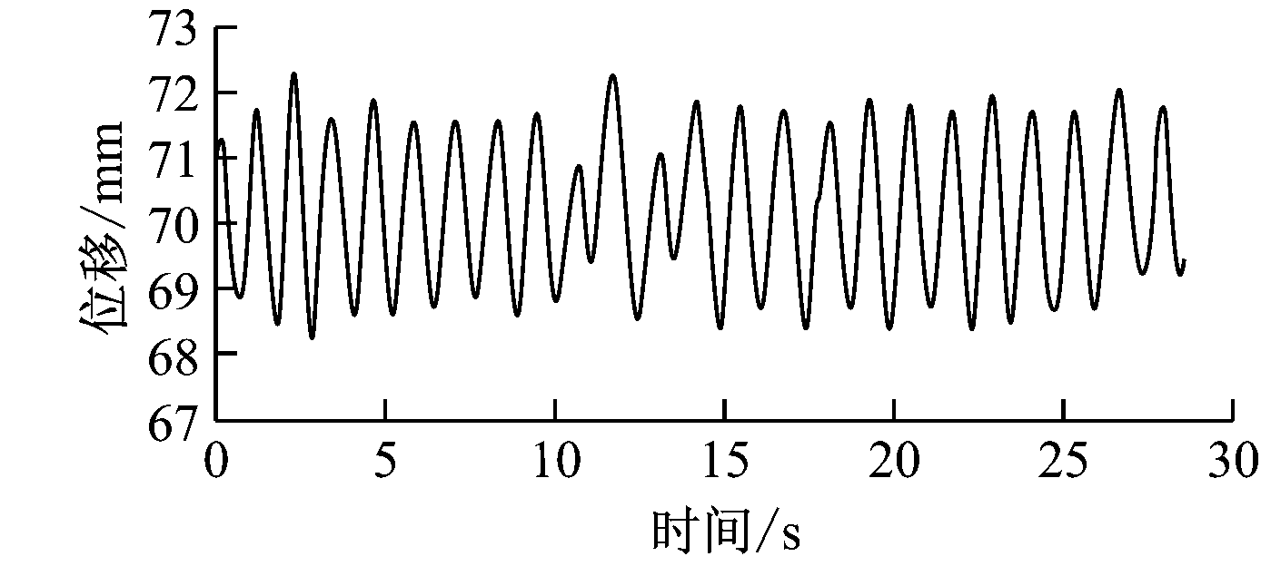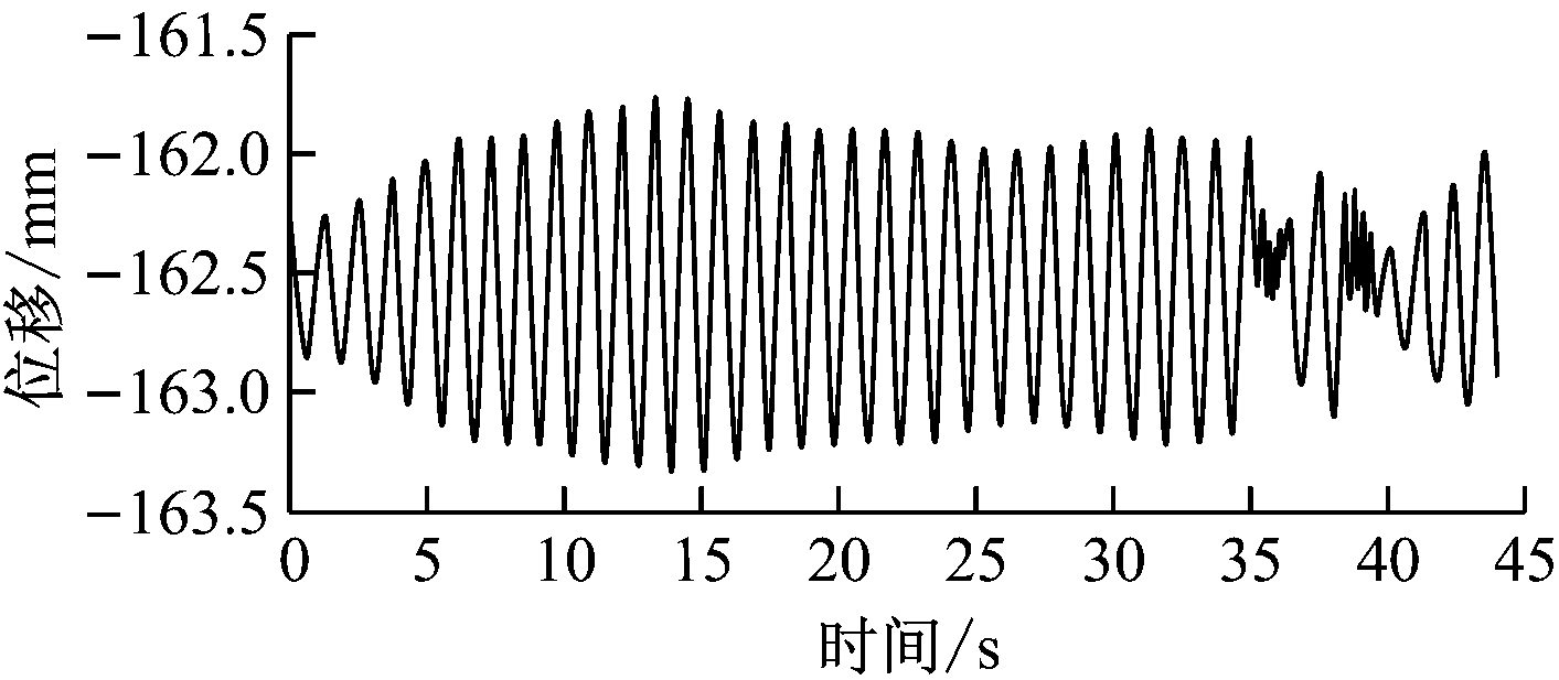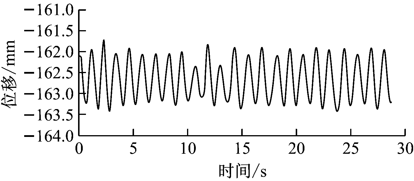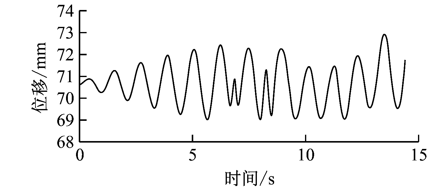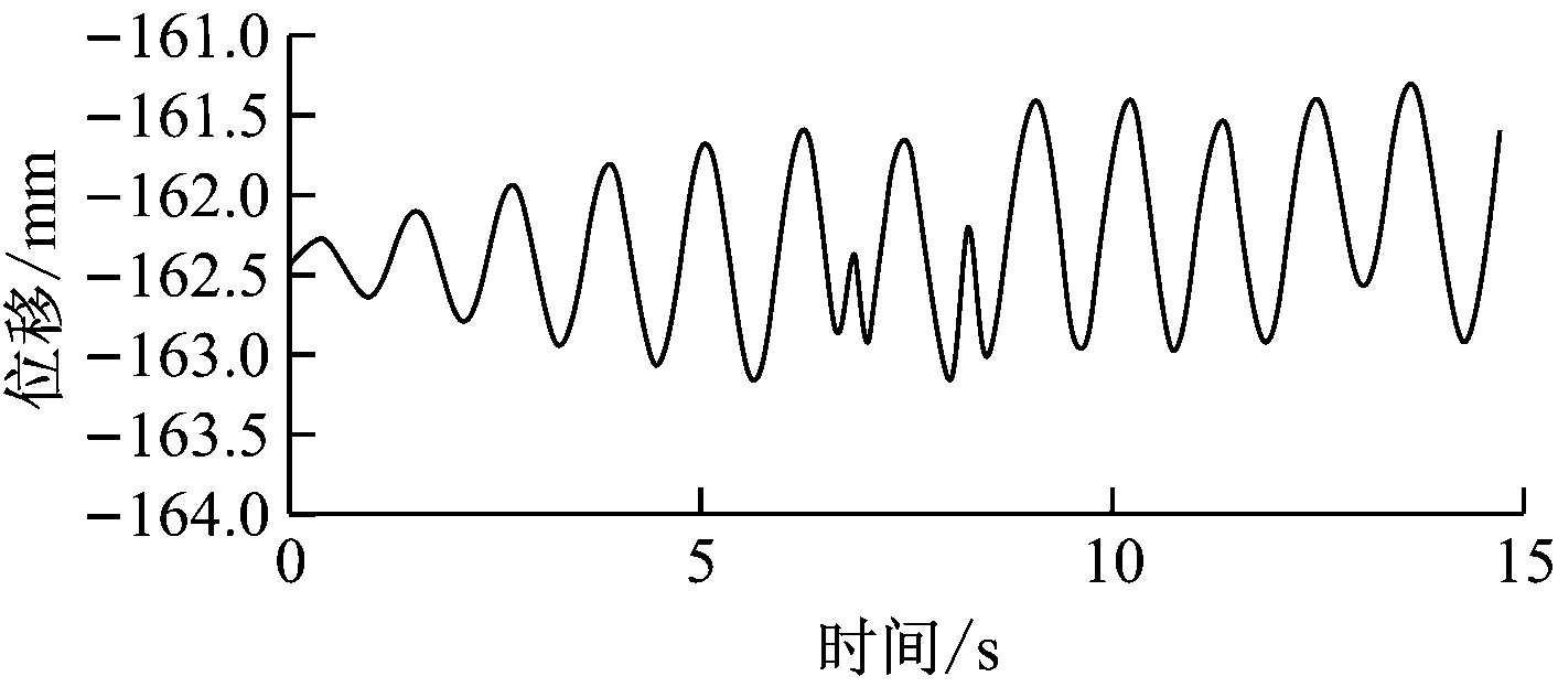 经分析可以得出结论:① 巡检机器人在水平沿线运动方向始终能够保持匀速直线运动,从而保障巡检任务正常完成;② 巡检机器人位移反映整个巡检机器人的质心变化,由于悬线钢丝绳为柔性体,巡检机器人质心在竖直运动方向和水平侧摆运动方向上有小范围波动,但均在允许范围之内;③ 巡检机器人在整个运动过程中的位移变化比较平稳,验证了机械结构设计的合理性。