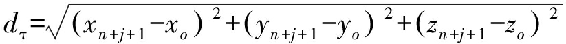 式中:(xn+j+1,yn+j+1,zn+j+1)为次目标点坐标;j为全局静态航迹上被突发威胁覆盖的航迹点数。