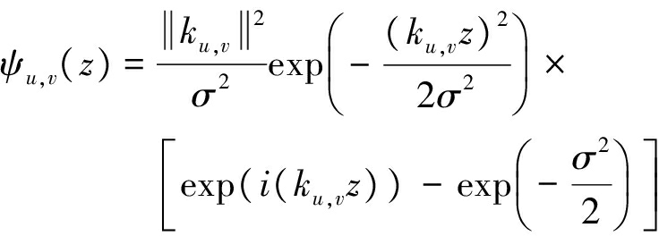 式中:ku,v为滤波器中心频率,u为方向因子,v为尺度因子;σ为与小波频率带宽有关的常数;z为给定位置的图形坐标,z=(x,y)。