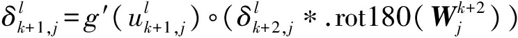 为反传误差信号,即灵敏度;“∘”表示2个向量的阿达马积;up()表示对图像矩阵进行不重叠的下采样;rot180()表示将一个矩阵水平翻转一次,再垂直翻转一次。