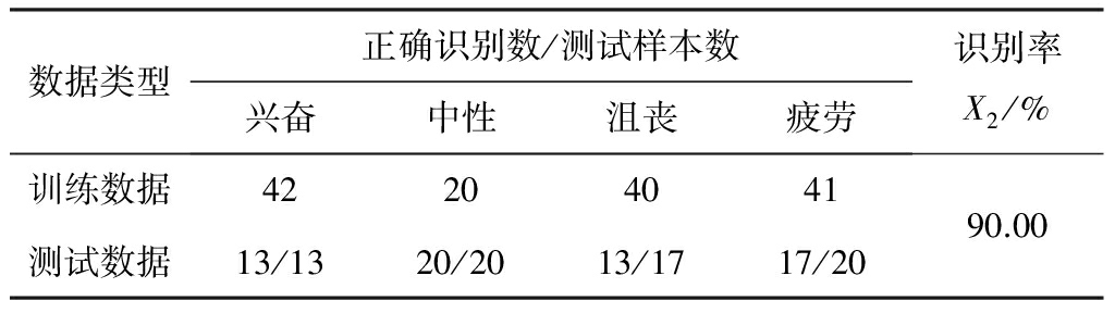 由表1可知,兴奋和中性的面部表情特征比较明显,容易区分,而沮丧和疲劳的特征区分不太明显,导致识别率下降。