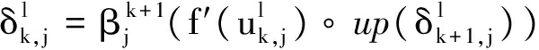 为第k个卷积层或下采样层第j个面,l为所训练的图片序号;f()表示卷积层与其上一层的连接关系,f′()表示其导数