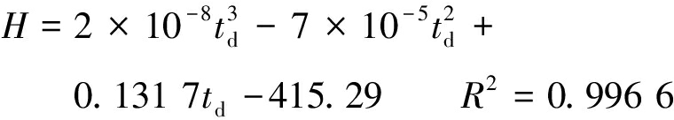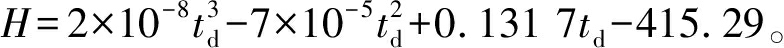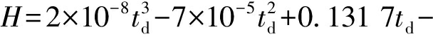 (2) 岱河煤矿闭坑后积水高度H与时间td关系表达式为