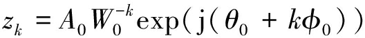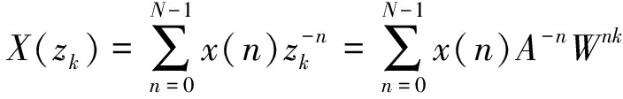 式中:A=A0exp(jθ0),A0为起始抽样点的矢量半径长度,θ0为起始抽样点的相角;W=W0exp(-jφ0),W0为螺线的伸展率,φ0为相邻抽样点的角度差;k=0,1,…,M-1。