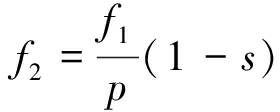 式中:fBPF为叶片通过频率;Y为叶片数;f2为电动机转动频率;f1为电动机电源频率;p为电动机极对数;s为转差率。