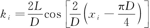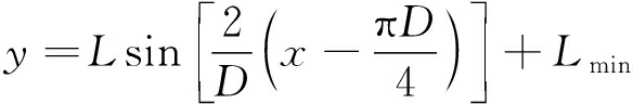 式中:y为轴向位置;x为周向位置;L为沟槽轴向距离,L=Lmax-Lmin;D为调速内套外径。