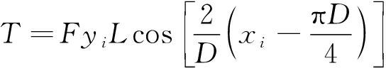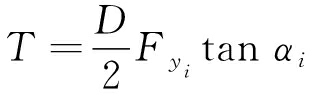 若某时刻磁力偶合器的间隙为yi,轴向吸力为Fyi,此时沟槽受力位置处的倾斜角度为αi,为保证yi值不变,根据式(1)可得调速机构需提供的扭矩T为
