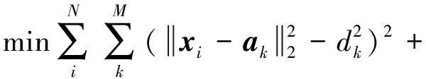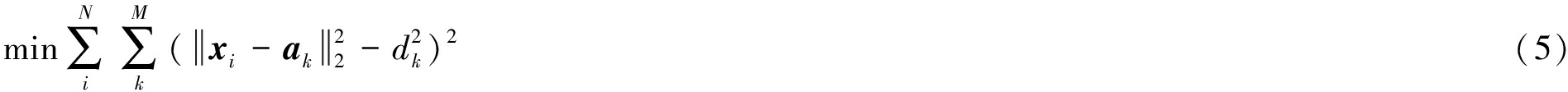 假设未知节点有N个,第i个未知节点坐标为xi,所有未知节点定位误差和最小的定位模型为