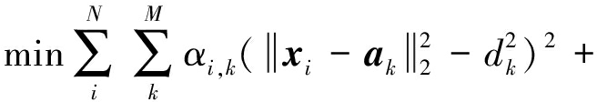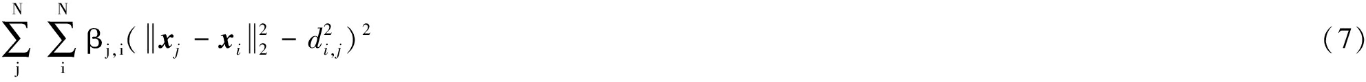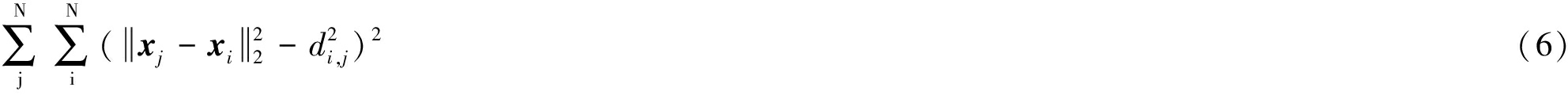 令第i个节点与第j个节点的距离为di,j,将未知节点之间的信息利用起来,则定位模型可设计为