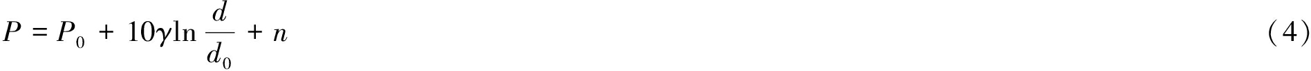 式中:P为距离d处的接收功率;P0为参考距离d0处的接收功率;γ为路径损耗;d为接收节点与发送节点之间的距离;n为信道噪声。