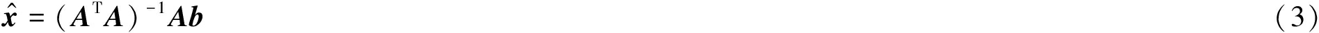 利用最小二乘法可得未知节点坐标为