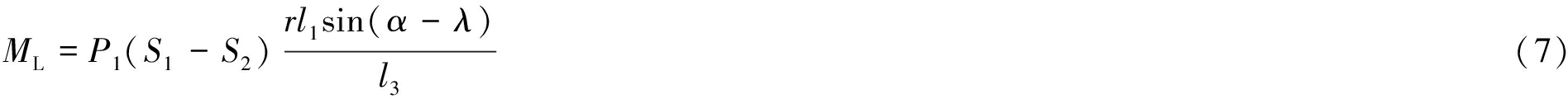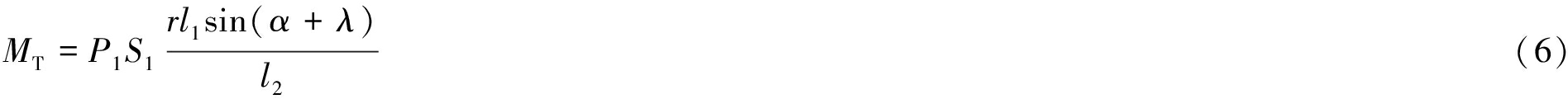 式中:P1为回转油缸压力;S1为回转油缸筒横截面积;S2为回转油缸杆横截面积。