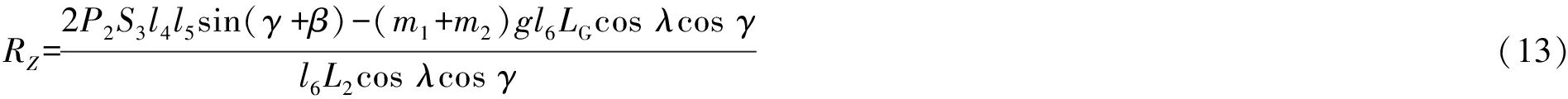 式中:P2为升降油缸压力;S3为升降油缸筒横截面积。
