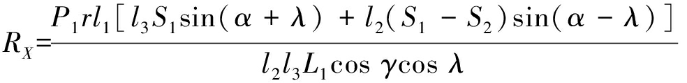 以EBZ160型掘进机为例,根据相关结构尺寸参数可得截割头载荷RX对应于机身偏向角θ的力矩为