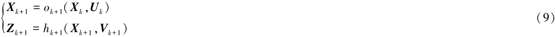 式中:Xk+1为k+1时的状态向量;ok+1为状态转移函数;Uk为k时的平稳噪声;Zk+1为k+1时的测量向量;hk+1为观测函数;Vk+1为k+1时的观测噪声。