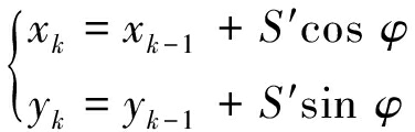 式中:(xk,yk)为第k步时的行人坐标;φ为第k-1步时的方向角。