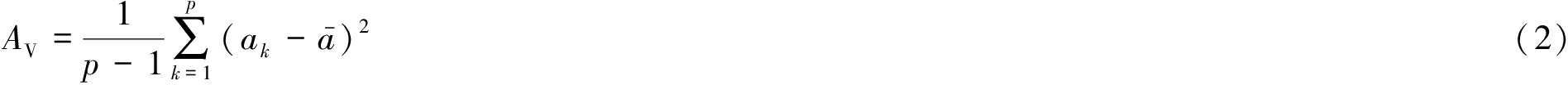 式中:AV为加速度方差;p为行走1步的过程包含的样本数;ak为行走第k步时的加速度;