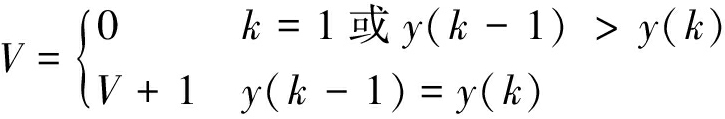 式(6)描述:算法第1次迭代或相邻2次迭代的最优适应度不相等时,将V置0;相邻2次迭代的最优适应度相等时,令V=V+1。因此V可用来表示在当前迭代次数下最优烟花的存活代数。