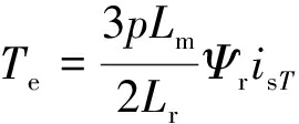 式中:p为磁极个数;Lm,Lr分别为转子互感和电感;Ψr为转子磁链;isT为MT坐标系下定子转矩电流T轴分量。
