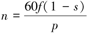 对于异步电动机,其转速n(r/min)与供电电源频率f间满足式(5)[16]。