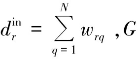 将带式输送机多机功率平衡控制系统N个节点间的通信关系建模成图G=(V,E),其中V为节点集合,边集E表示N个节点间通信关系,E⊆V×V。若节点r可接收到节点q的信息,则{r,q}∈E,r,q=1,2,…,N,r≠q,反之{r,q}∉E。对于加权网络,若{r,q}∈E,则节点r与节点q之间的邻接权重wrq>0,反之wrq=0。若{r,q}∈E,则节点q为节点r的输入邻居节点,Ar={q|{r,q}∈E}表示节点r的输入邻居节点集,dr=|Ar|表示节点r的入度。记节点r的加权入度