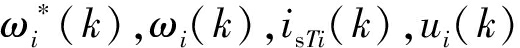 分别为子系统i中电动机给定转速、转速、定子转矩电流T轴分量和控制输入的离散值;ωq(k),isTq(k)分别为执行器/传感器节点i从邻居节点q接收到的电动机转速、定子转矩电流T轴分量的离散值;k=1,2,…。