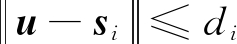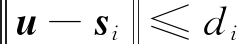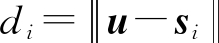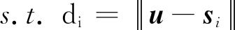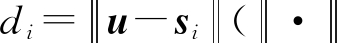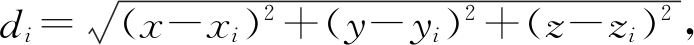 假设在三维空间布置N个锚点,第i个锚点的坐标为si(xi,yi,zi),i=1,2,…,N,待定位目标的坐标为u(x,y,z)。记待定位目标到第i个锚点的距离为di,即